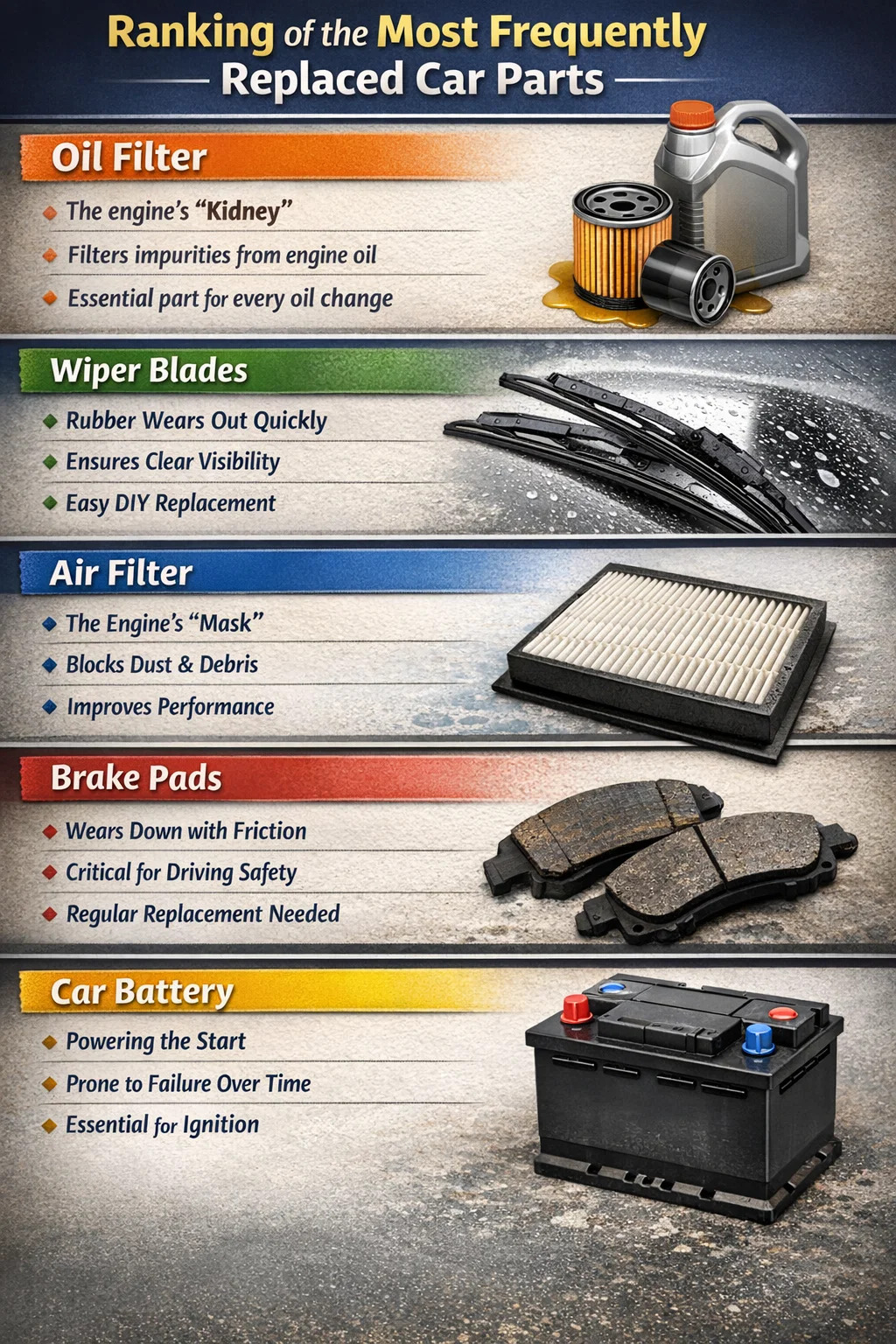▶Ranking of the Most Frequently Replaced Car Parts