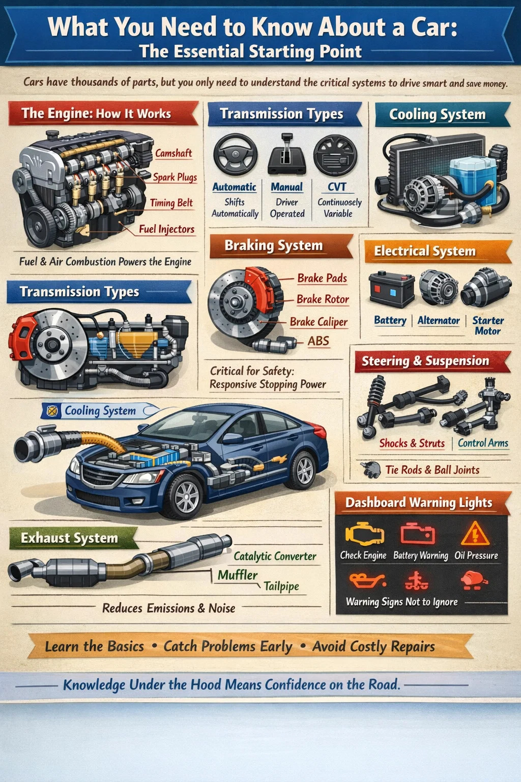 Whether you're a first-time buyer, a new driver, or someone tired of nodding along at the mechanic, knowing your car's key components gives you real confidence. You'll catch warning signs earlier, ask better questions, and avoid repairs you don't actually need.